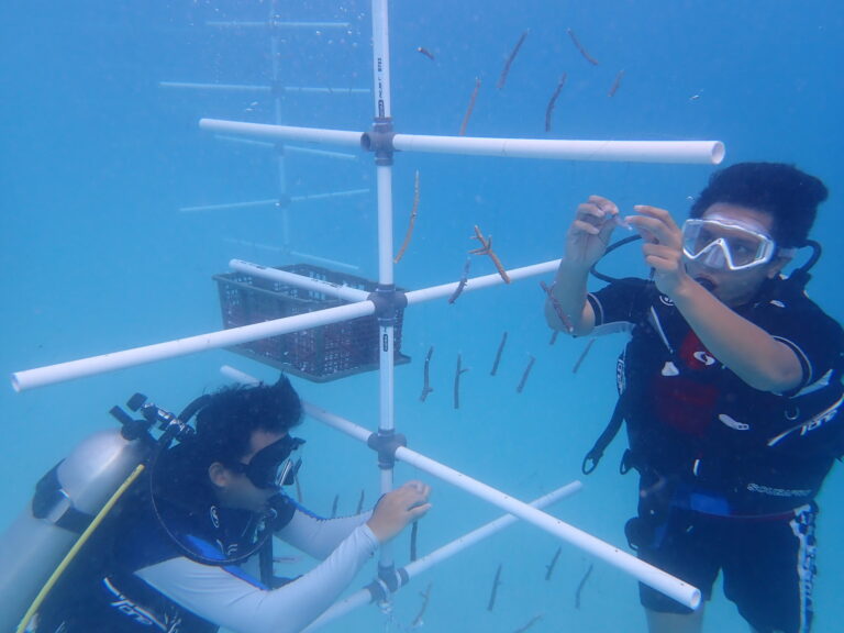 We made it our top mission to restore the coral reefs and create a healthy ecosystem in the surrounding waters and we are doing so by these following activities: