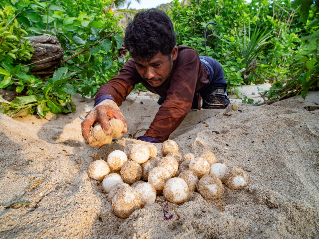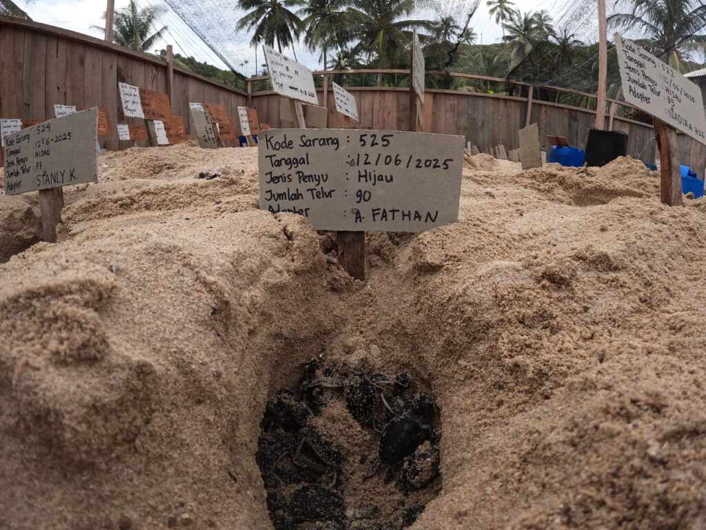 The Anambas Islands still grapples with the illegal trade of turtle eggs. We partner up with a community-based conservation group called Penyu Jemaja Lestari whose work focuses on rescuing turtle eggs and protecting turtles in Teluk Dalam, Sunggak of West Jemaja. The main activities of the Turtle Conservation initiative are regular monitoring, researching and raising awareness. To carry out these activities, we chose several people from the community who were former illegal egg traders. We trained, educated and provided them with an alternative source of income and turned them into rangers who are protecting the turtle populations in the area.